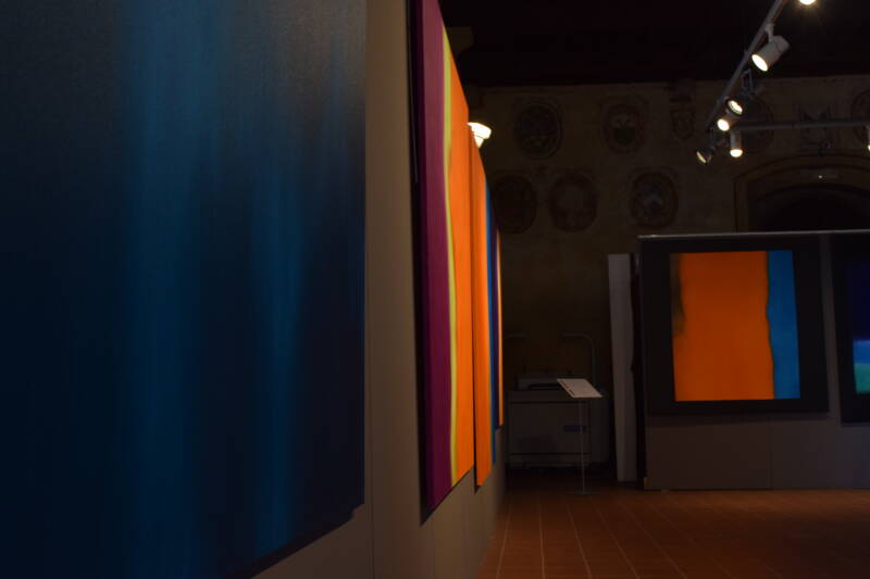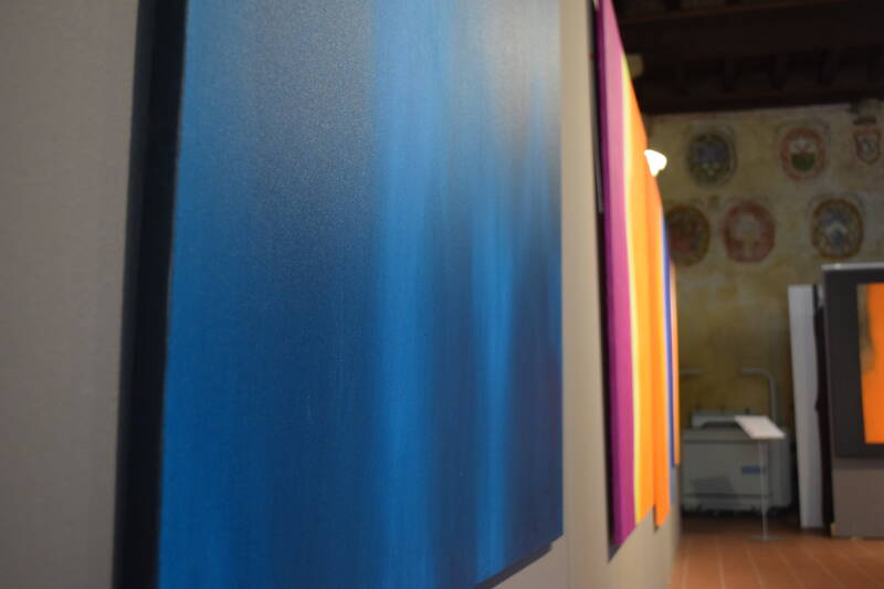 Through a considered exploration of color, applied with patient craftsmanship, the exhibited works seek to generate a creative dialogue between the artist and the audience: the choice of colors, their dynamics of encounter and interaction, the forms that they spontaneously bring to life, are therefore aimed not at affirming some subjective perspective of the artist, but at generating a dialogue arising from the surprising harmonies that colors create as they meet.